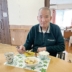 玉ねぎとベーコンを元ベテラン主婦の皆様は、慣れた手つきで次々と切っていきます。パスタを湯煎をして、茹で上がったらホットプレートに具材を入れ炒めていきます。入居者様一人ひとりの分をトングで炒めて、まんべんなく火が通ったところで調味料を投入。にんにく、ケチャップの香ばしい香りが立ち込めてきました。「美味しいそうや」と笑みがこぼれ、待ちきれないご様子。お皿に盛り付け熱々パスタを皆で「頂きます!」