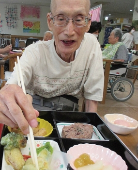 9月15 日(月)は敬老の日。皆様おめでとうございます。敬老の日の1週間前から【敬老週間】と称し、おめでたいレクリエーションを皆様と楽しみました。特に喜んで頂けたのが昼食の松花堂弁当です。笑顔いっぱい!お腹いっぱい!大好評の昼食でした。レクリエーションも大盛り上がりで楽しい敬老週間を過ごして頂けました。