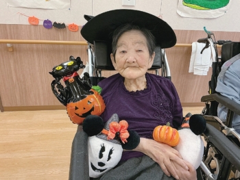 昼食にハロウィンメニューが提供されました。メニューはみんな大好き「きのこオムライス」「かぼちゃのプリン」。大きなオムライスに皆さん箸が止まらず、パクパクと食べられました。「しっかりと味があり美味しかった」と大好評。かぼちゃプリンは、甘みがあり完食されました。食後は、ハロウィンの仮装を楽しまれ、記念撮影をしました。