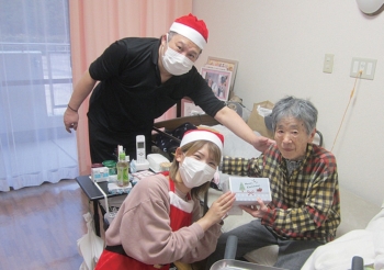 クリスマス会を開催しました。職員によるピアノ演奏を聴きながら、皆様、お菓子バイキングを楽しまれました。「今日はお菓子食べ放題やなー」とやや興奮気味の方もおられました。その後、雪玉ボーリングに挑戦!「がんばってー」の声援を受けながら、赤い帽子を被り、ストライク目指して頑張りました。最後にクリスマスプレゼントが配られ、素敵な笑顔を見せて頂きました。