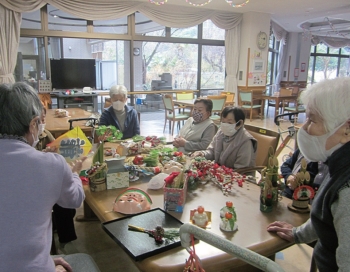 年末を迎え、入居者様と一緒に年越しの準備をしました。まずは一年間お世話になった食堂の大掃除です。「みんなでピカピカにするでー」との掛け声とともに机も椅子も綺麗にして頂きました。そして来年も良い一年になる様にとの願いを込めて、しめ縄作りと飾り付けをしました。「これで正月が迎えられるわ」と笑顔が見られました。よいお年をお迎えくださいね。