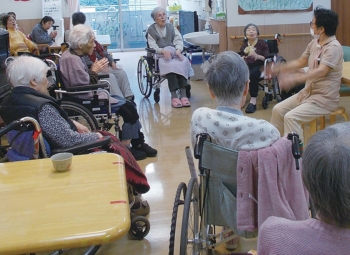 毎日寒い日が続きますが、愛宕ケアハウスでは皆様集まって、ナースによる「体操レク」が行われています。寒くなると体も冷えて動きが鈍くなってしまうのを防ぐために、声を出して体を大きく動かします。大勢で体操すると何だか楽しいですね、終る頃には体もポカポカ暖まり笑顔が沢山見られました。