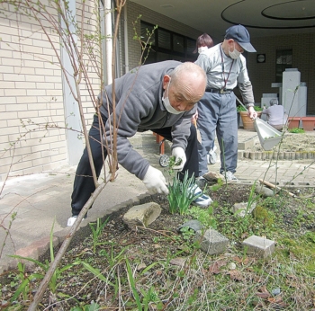 春の暖かさが感じられるようになった日に今年も園芸活動が開始、園芸や畑仕事の経験が豊富な入居者様が集まって、園芸活動の第一歩、「草抜き」から始めました。育てている花と雑草との見分けが難しく、「これ、草か?抜いてもええんか」、「それは花やで。こっちが草やな」と話し合いながらの作業。畑の準備も完了し、いよいよ本格的に園芸活動が始まります。