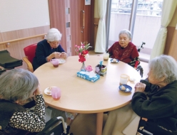 毎月恒例のお誕生日会で、5名の方が誕生日を迎えられました。職員が作った誕生日カードをプレゼントし笑顔で受け取られ、最後に皆さんで♪ハッピーバースデー♪を歌いお祝いしました。