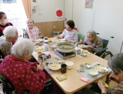 寒い日は、あったか~い『おでん』が食べたくなりますよね。なでしこユニットでは、『おでん鍋』を作りました! 大根の皮むきや、ゆで卵の殻むき、竹輪やじゃが芋も切っていきます。お鍋に入れたら、お出汁で煮込んで出来上がり! 皆さんで一緒に作って食べて、楽しく暖かい昼食でした。