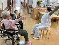 ケアハウスでは毎日、午前中にリハビリ体操の時間があります。寒い日が続きますが、多くの入居者様が参加されています。ケアハウス職員の指導の下、皆様音楽に合わせて懸命に体を動かしておられました。