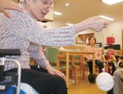愛宕ケアハウスで『ミニ縁日』を開催しました。ミニプールに水を張り、色とりどりのヨーヨーが浮かんでいます…。そうです『ヨーヨー釣り』です。ご覧になった皆様は「懐かしいなぁ」「夏やなぁ」と興味津々。でもなかなかヨーヨーが釣り上げられず「もう一回!」と悔しそうに何度もチャレンジされる姿も…。
