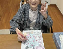 午後のひと時の時間に塗り絵を行いました。題材は給食のメニュー、花、季節の出し物を選びました。皆さん集中され、細かい部分まで丁寧に塗っておられました。「久しぶりに塗ったで、肩がこったわ。綺麗に塗れたわ」と楽しまれていました。ゆっくりと塗る事ができ、たくさんの作品が完成しました。