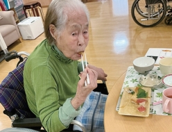 本日の昼食はおでん鍋。大根や卵などが鍋の中でじっくりと煮込まれ、ふたを開けるとだしのいい香りが広がりました。「あったかくて美味しい」「寒いときはおでんやね」といった声もあり、皆さま自然と笑顔に。身体も心も温まる和やかなひと時になりました。これからも季節を感じていただける行事を大切にしてまいります。