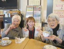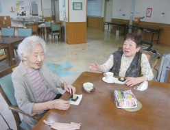 月1回のお楽しみ喫茶が開催されました。今月のお菓子は秋らしく、「栗きんとん」です。入居者の皆様は、お好みの飲み物と一緒に栗の優しい甘さを楽しんでおられました。「今の栗きんとんって、白いんやなぁ」、「栗はいつ食べてもおいしいわ」と会話も弾みます。暖かい秋の午後、楽しく穏やかな時間を過ごされました。