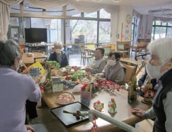 年末を迎え、入居者様と一緒に年越しの準備をしました。まずは一年間お世話になった食堂の大掃除です。「みんなでピカピカにするでー」との掛け声とともに机も椅子も綺麗にして頂きました。そして来年も良い一年になる様にとの願いを込めて、しめ縄作りと飾り付けをしました。
