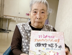 毎月恒例のお誕生日会で、5名の方が誕生日を迎えられました。職員が作った誕生日カードをプレゼントし笑顔で受け取られ、最後に皆さんで♪ハッピーバースデー♪を歌いお祝いしました。